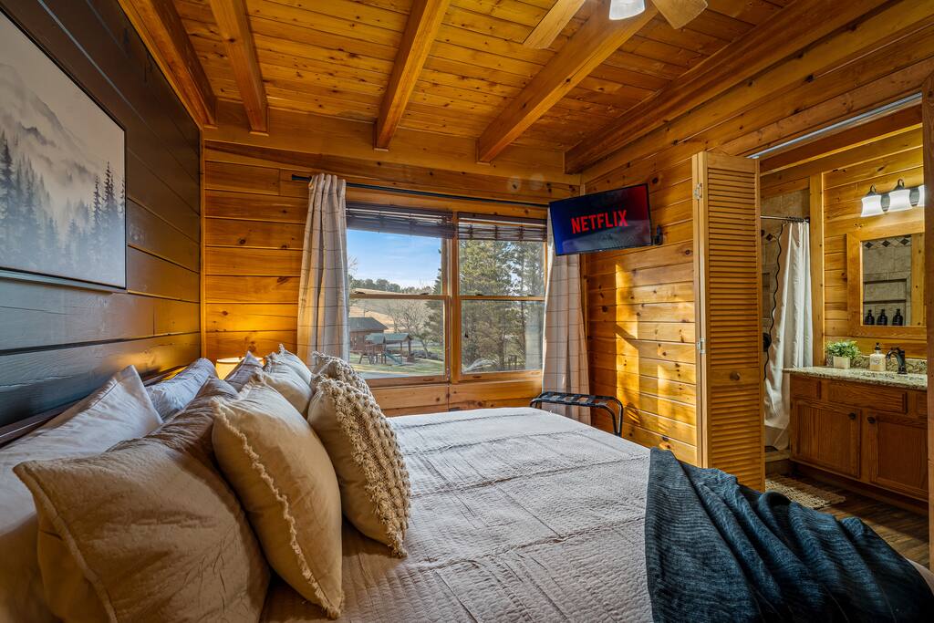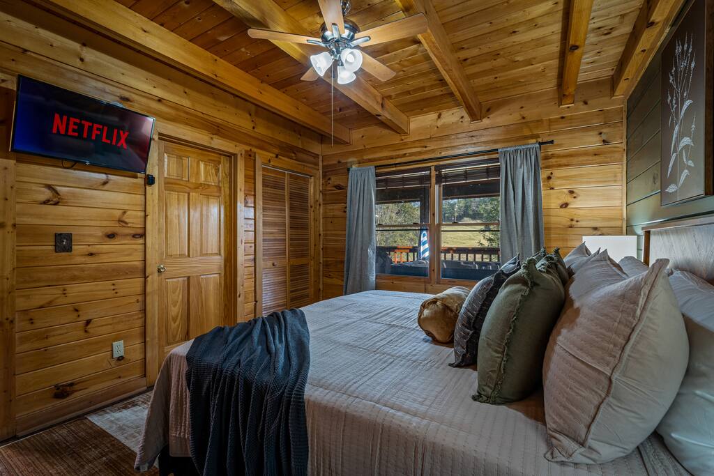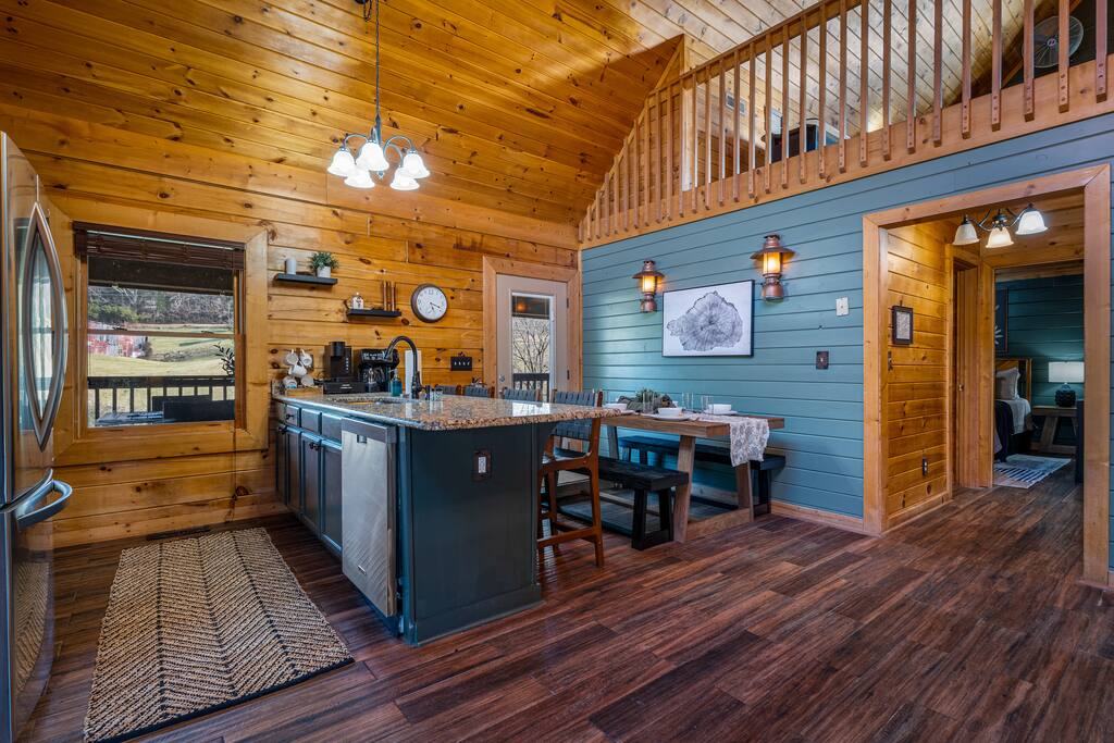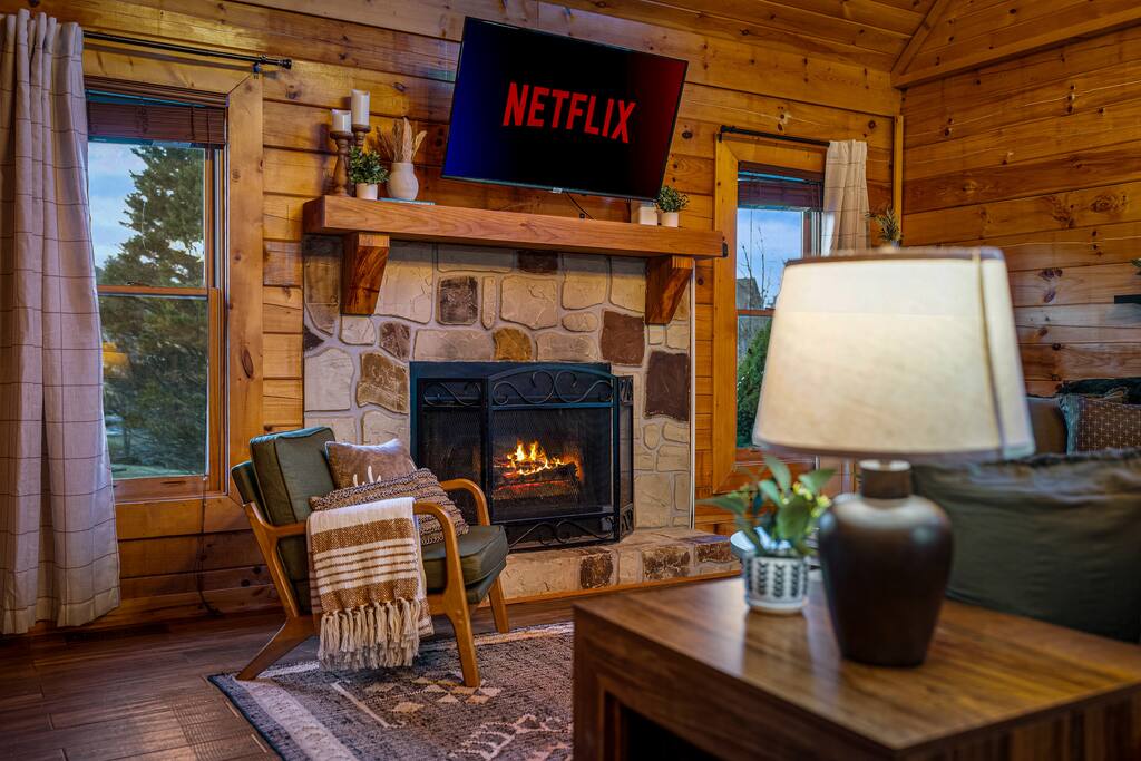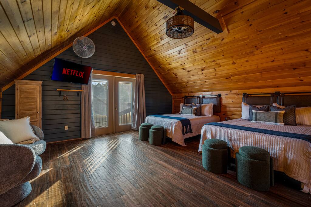 This is your modern mountain retreat. A cabin designed with intention and luxury, just minutes from everything yet tucked away in peaceful surroundings. Whether youβre sipping coffee on the deck, lounging by the pool, or fishing by the pond, this stay is all about rest, style, and making memories.
