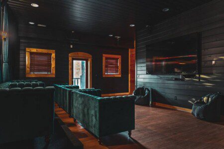 📺 Theater Room – Big screen movie nights with beautiful velvet loungers