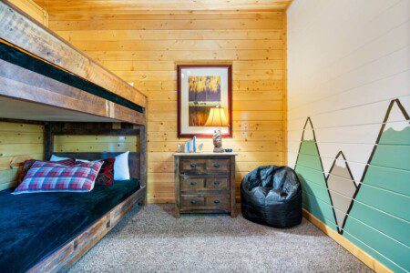 Bedroom 6 → Queen-Over-Queen Bunk + Kids Teepee and Mural + Shared Full Bath Access (4 guests)